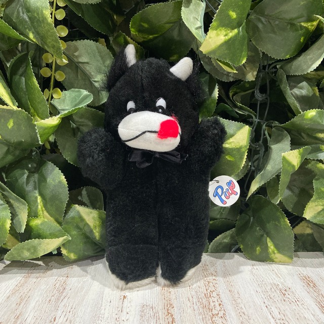 ハローPupだよーʕ•ᴥ•ʔ 舌ぺろウシくんのご紹介でーす⭐︎ 真っ黒い毛並みがチャームポイントのウシくんだよ! 舌をペロッと出してご飯が待ち遠しいね^ ^ 90年代ころのぬいぐるみだよ☆ ⭐︎サイズ たて20cm よこ13cm はば8cm ⭐︎コンディション 右足の裏面に薄らとシミがあります。 特に目立つダメージはありませんがユーズド品と言うことをご理解くださいませ。 『C』 A 美品または新品 B 普通にきれい C ちょっと使用感、薄汚れあり(写真参照) ⭐︎⭐︎おねがいになります⭐︎⭐︎ ⭐︎写真やコンディション欄にて状態の記載には努めておりますが、あくまでもユーズド品となりますので細かいダメージなどある場合があります。 ⭐︎サイズはおおよその計測ですので誤差はご容赦ください。 ⭐︎古い、新しいなど年代によりコンディション欄の評価は主観で判断し記載しております。 ⭐︎音声や稼働のための埋め込み式機械が入ったぬいぐるみの場合、動作確認しておりますがすぐ動かなくなったり音が出なくなったりする場合がありますので予めご理解お願い致します。 ⭐︎お買い上げ金額6000円以上で送料無料となります。 よろしくお願いします~⭐︎ S