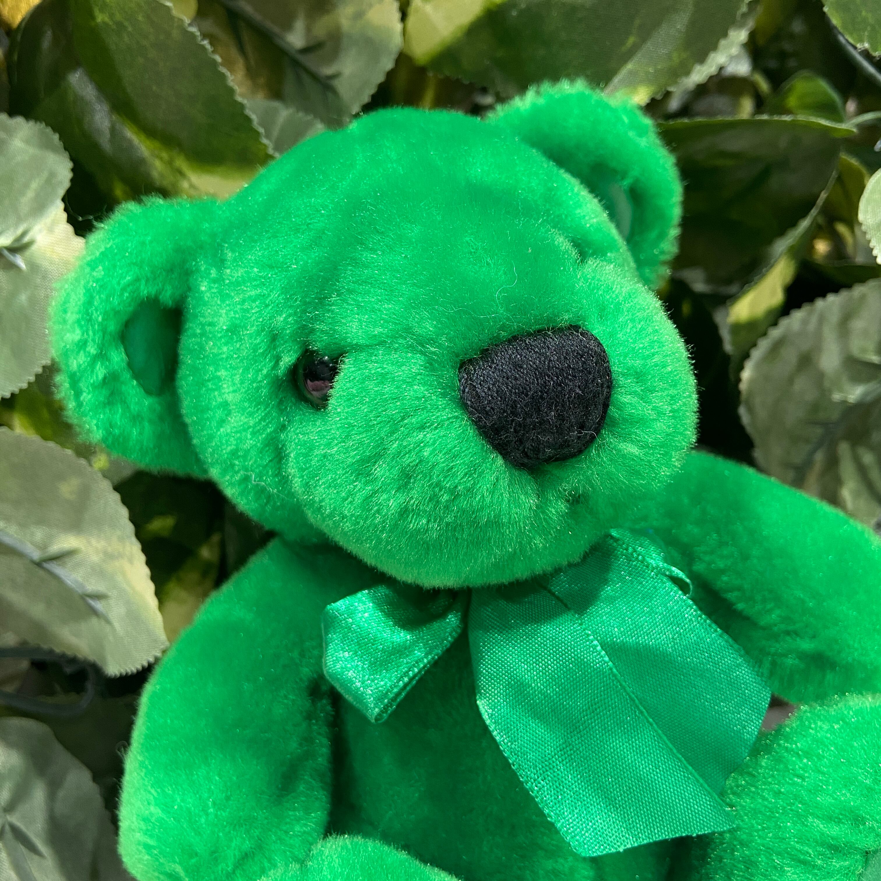 お目目とお鼻以外はグリーンカラーのテディベアくん!