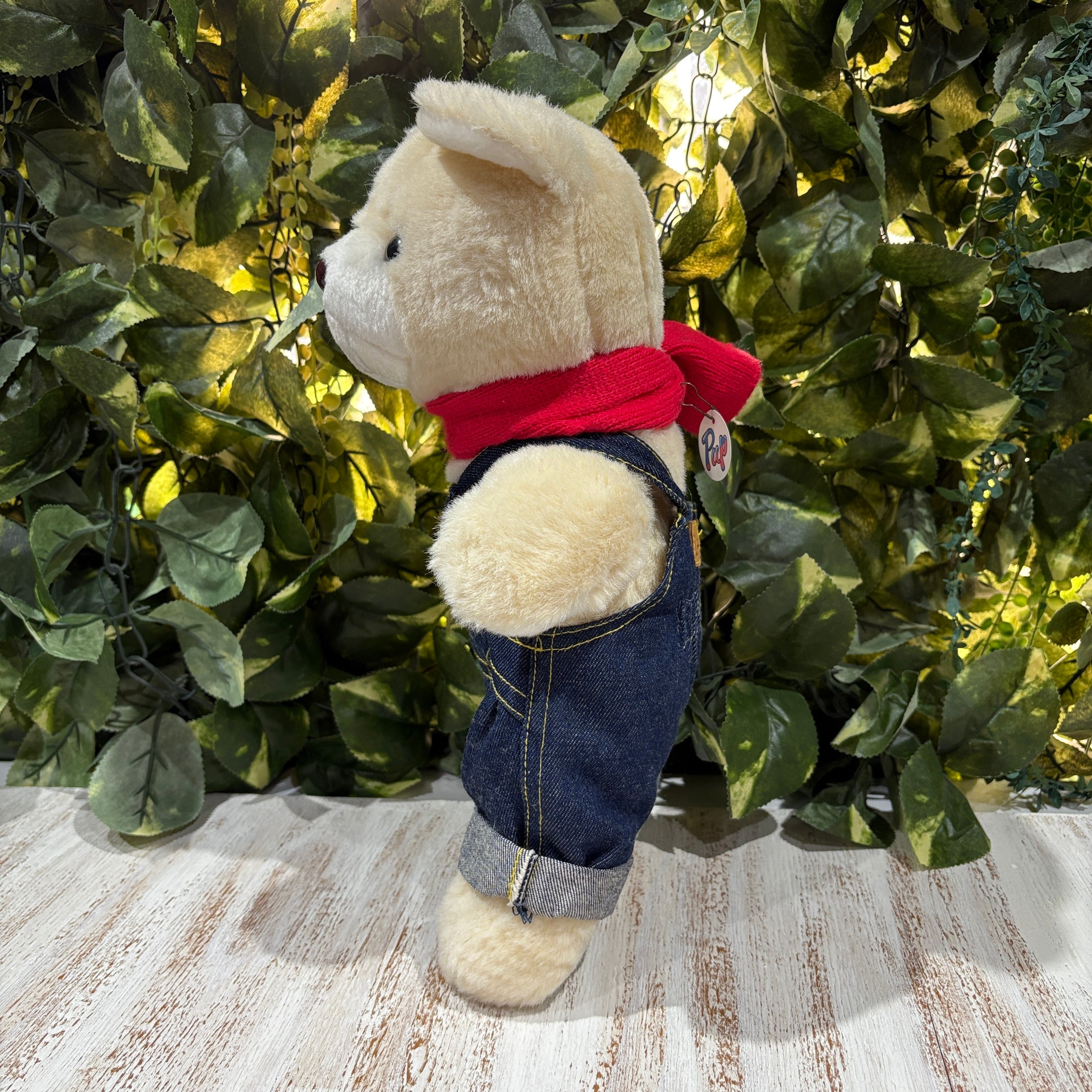 ヴィンテージLeeのオーバーオールにスキーチームのロゴが入ったマフラーを着用したクマさん!