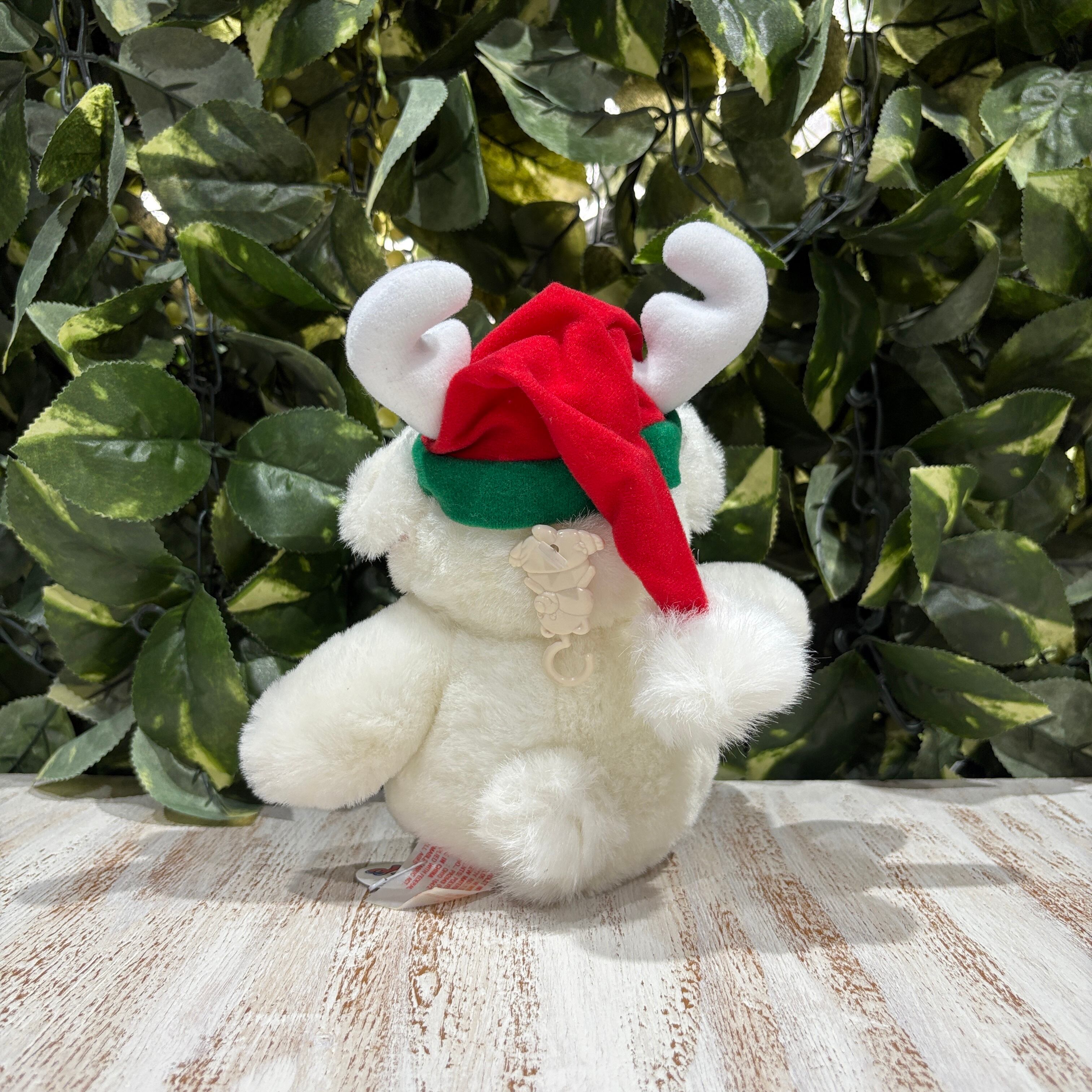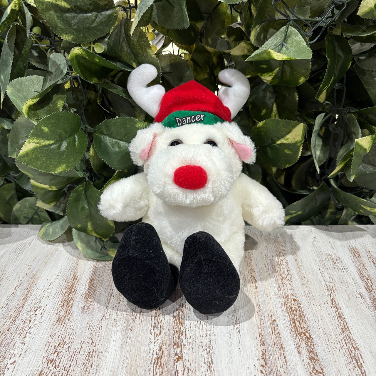 ☆お鼻が真っ赤なホワイトトナカイ☆ツノまで真っ白☆クリスマス帽子☆ソリ靴☆アニマル☆動物☆ぬいぐるみ☆
