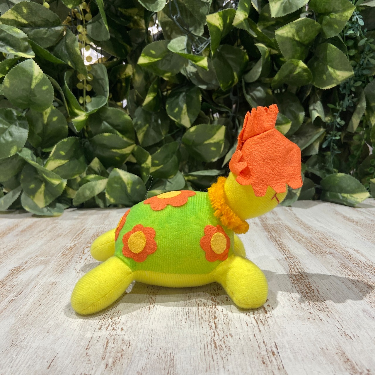 甲羅に可愛らしい配色の花柄と帽子を被ったホノルル・ハリー・タートルちゃん!