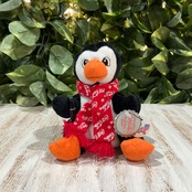 片手にコカコーラの瓶ボトルを持ってロゴ入りマフラーを巻いたペンギンくん!
