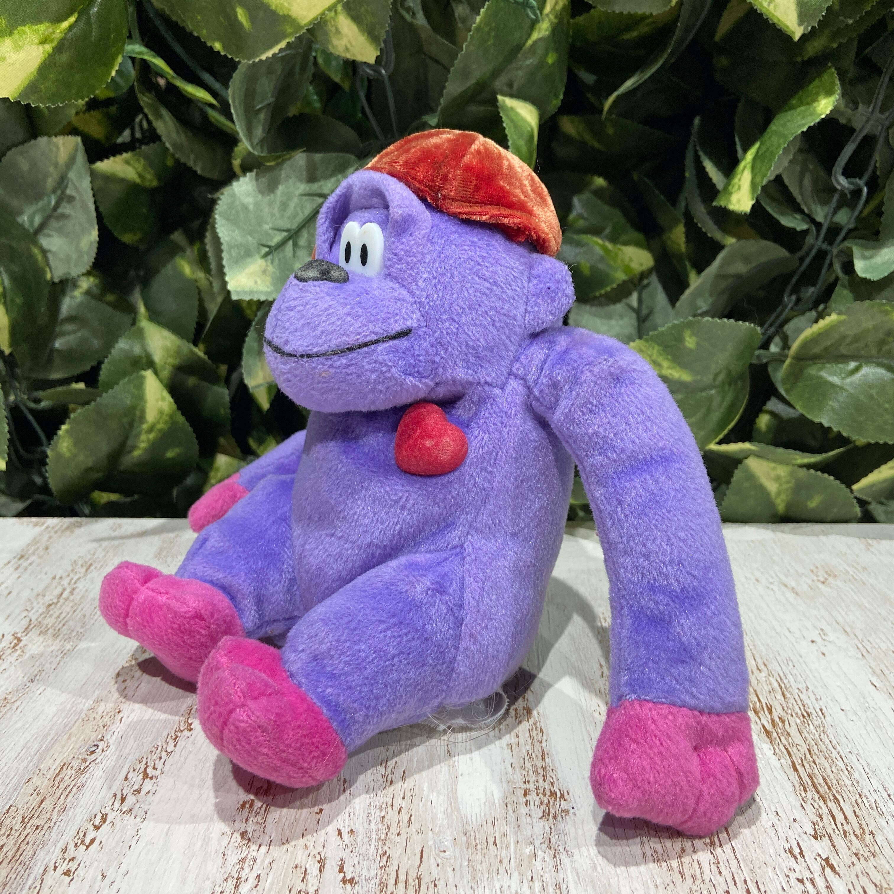 ハートが飛び出たパープルゴリラくん☆キャップ横被り☆お座りポーズ☆ぬいぐるみ☆